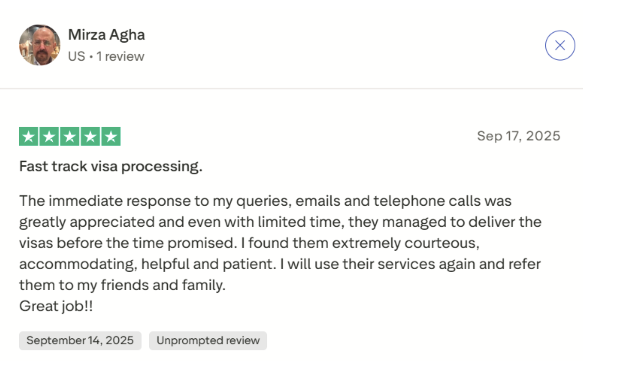 One customer shared their experience, praising how quickly and efficiently our team handled their request, ensuring a smooth and stress-free process from start to finish.