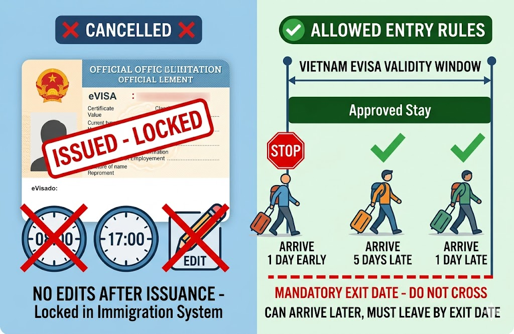 The Vietnam eVisa is a legal document linked to your passport number. Any modification—whether it is a typo in your name or a change in your visa validity vs travel dates—requires a completely new legal assessment. There is no "edit" button on the official portal for an approved visa.