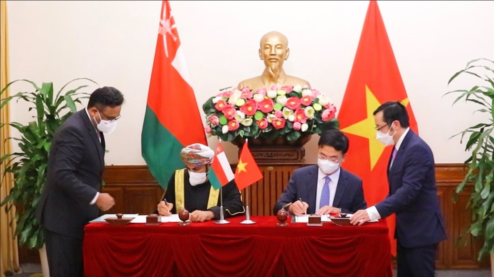 On April 28, 2022, in Hanoi, Ambassador Saleh Mohamed Ahmed Al Suqri of Oman and Deputy Minister of Foreign Affairs Pham Quang Hieu of Vietnam signed the agreement.
