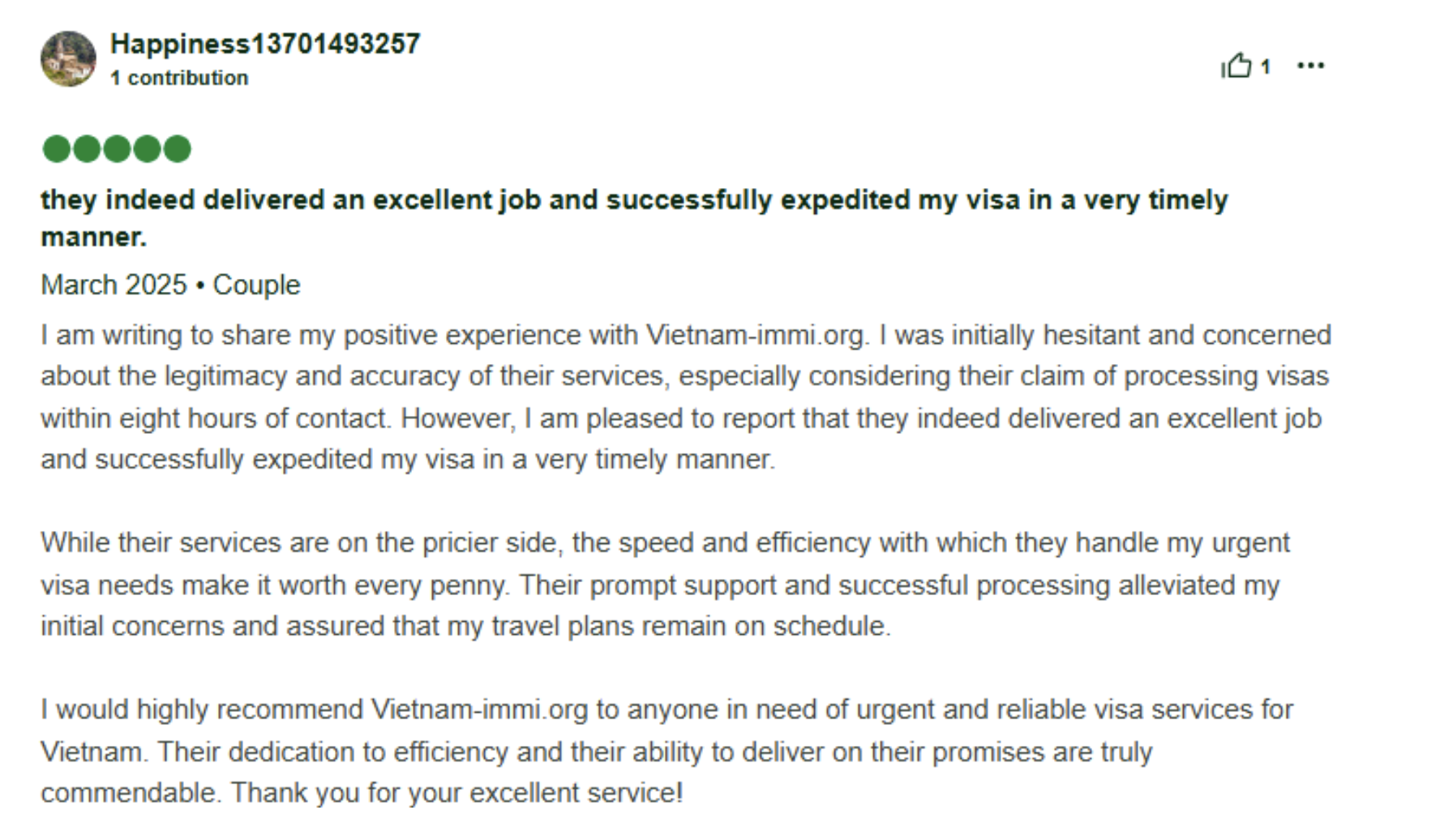 High satisfaction rate: Verified 5-star Vietnam visa service reviews