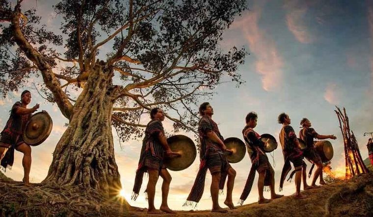 The gardens feature traditional structures, including the communal houses of the Bahnar or Giarai ethnic groups which can reach up to 30 metres high.